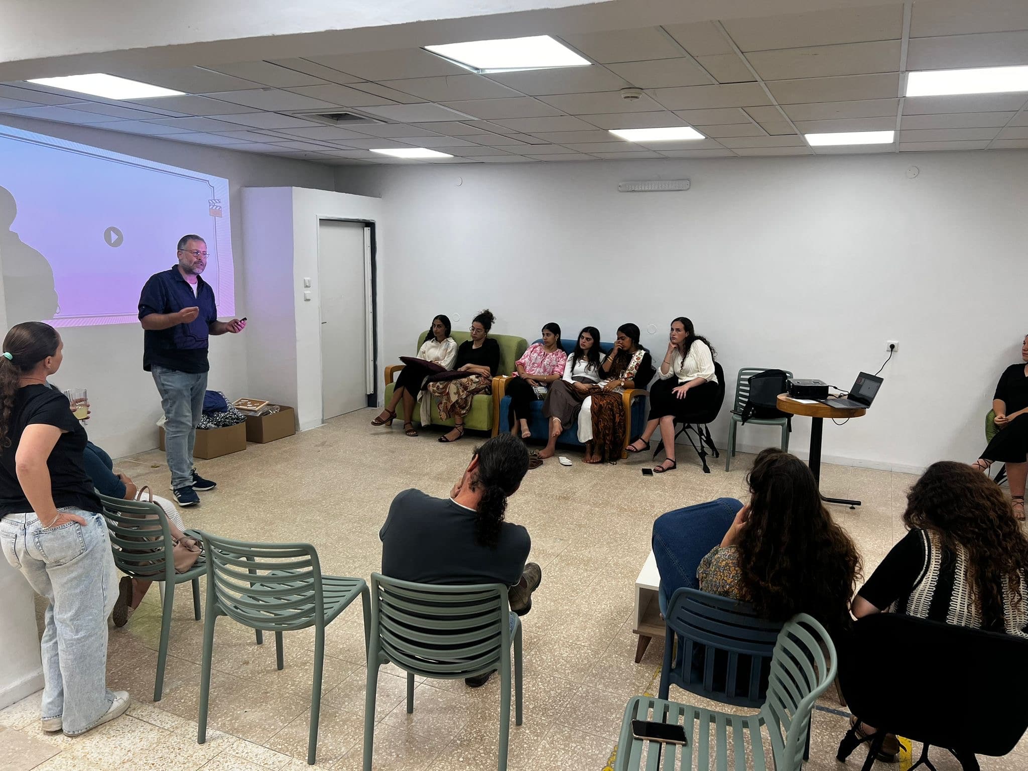 מקרן, מסך ורמקולים (בקהל מעל מאה אנשים יש לדאוג למקרופון)