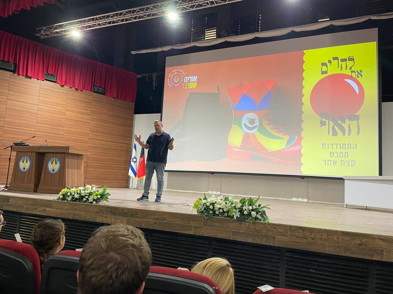 בקצרה על החוויה: ההרצאה מיועדת לגילאי 13- 120 בהתאמות הנדרשות, עורכת כשעה וחצי נגלה יחד איך כלים מעולמות התיאטרון, הליצנות והחינוך יכולים להזיז משהו עמוק – בצוות, בכיתה, בארגון – אבל קודם כול, בי.