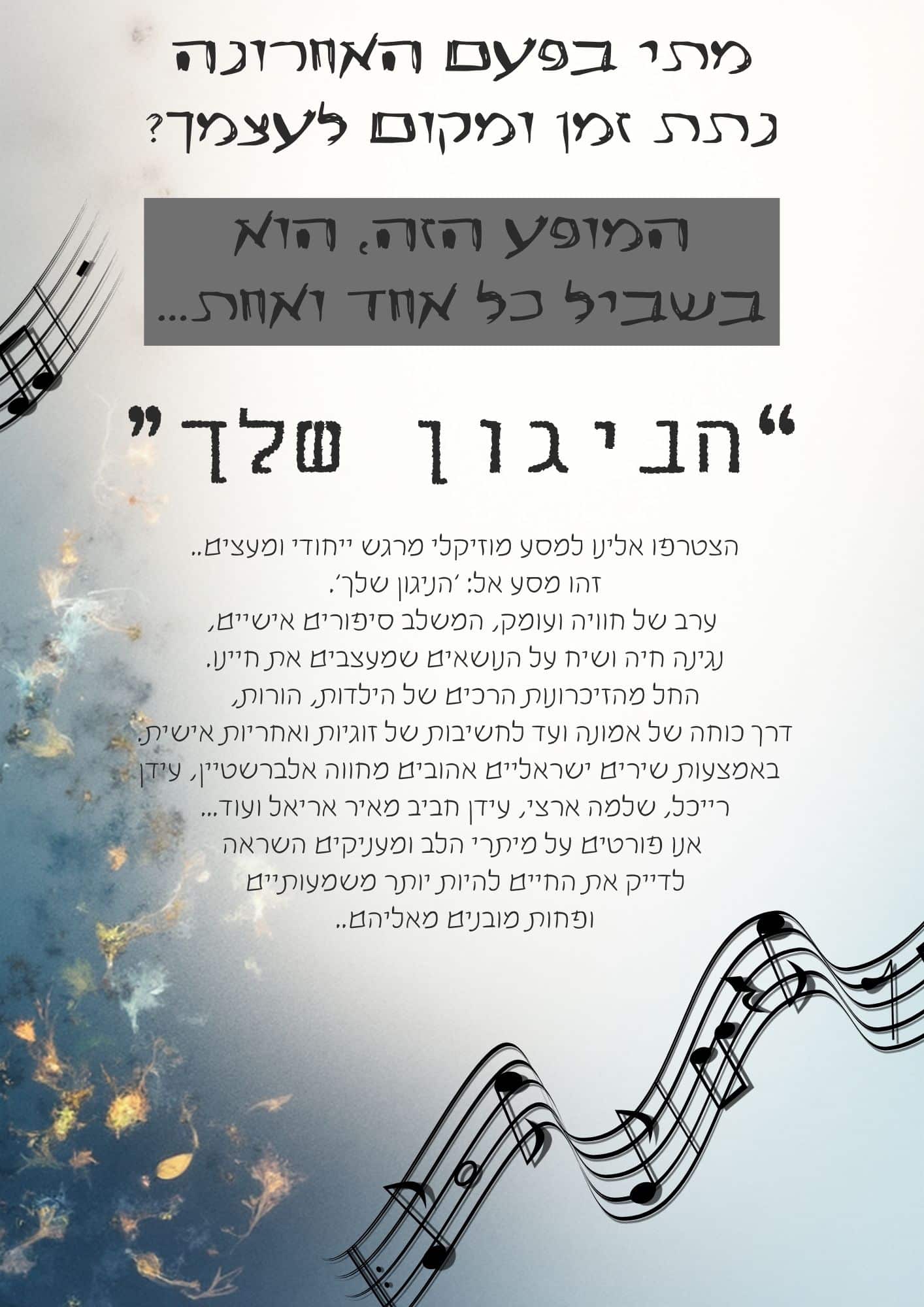מופע מוזיקלי מעצים ומעורר השראה – "הניגון שלך"